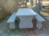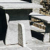 Die Stützen von Tischplatte und Bänke sind V-Vörmig. |